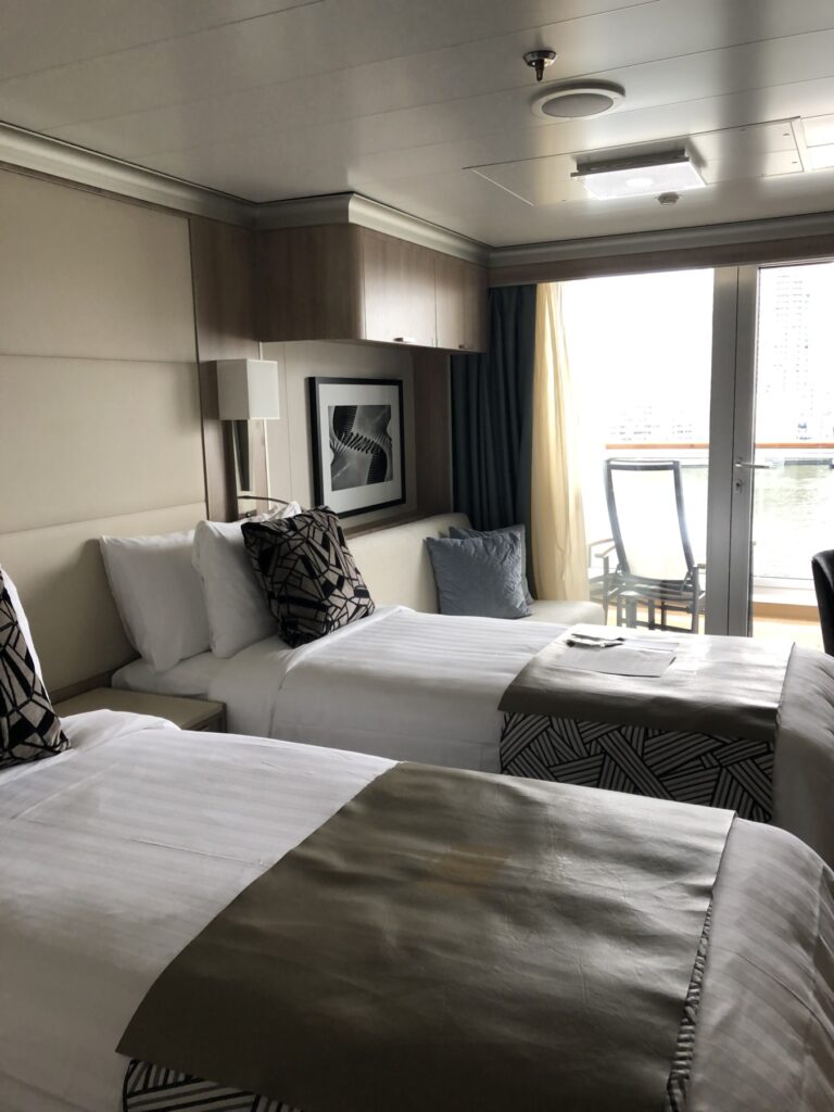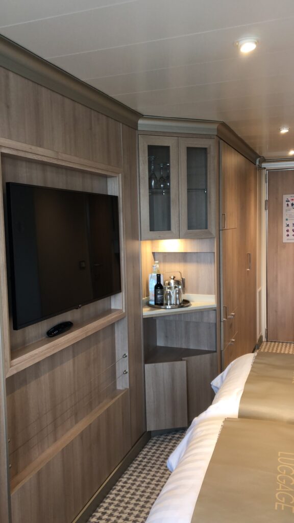 Die 1.334 Kabinen verteilen sich auf 13 Passagierdecks. Das Angebot reicht dabei von Innenkabinen über Außen-, Balkon- und Verandakabinen bis hin zu exklusiven Suiten. Wir hatten auf unserer Fahrt mit der MS Rotterdam eine Verandakabine. Sie hat uns aufgrund ihrer sehr guten Ausstattung und ihrer Größe sehr gut gefallen. Es gibt einen inkludierten 24-Stunden-Suiten-Service und auch die Minibar kann ebenfalls kostenfrei genutzt werden. Europäische Steckdosen sind vorhanden. Die Kissenauswahl ist groß und ebenfalls inkludiert. Deutsche Fernsehprogramme gibt es an Bord derzeit allerdings nicht.